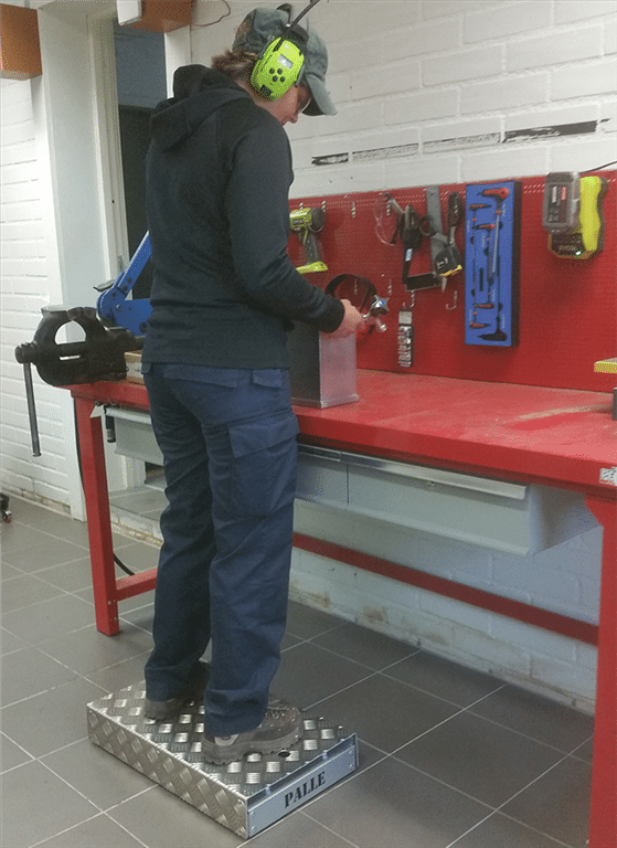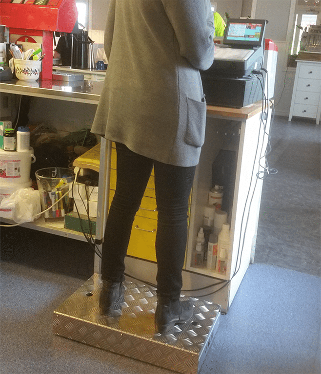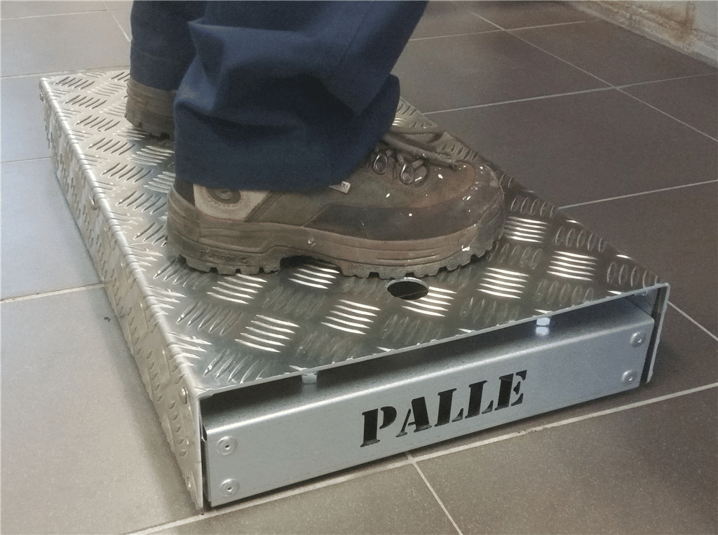 Flyttbar fotpall på hjul som fjädrar ned vid belastning, ca 25 kg, och ger dig en stabil och säker plattform att stå på. Enkel att flytta i och med att det är hjul på den. Optimal där man behöver komma upp en bit för att nå upp till hyllan. Justerbar i 3 höjder.