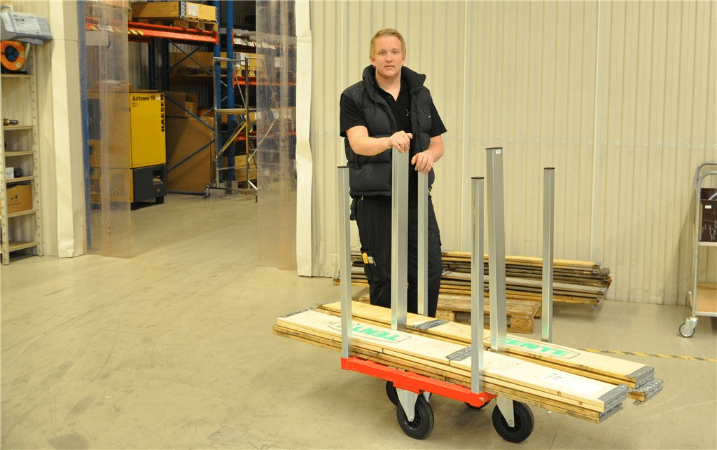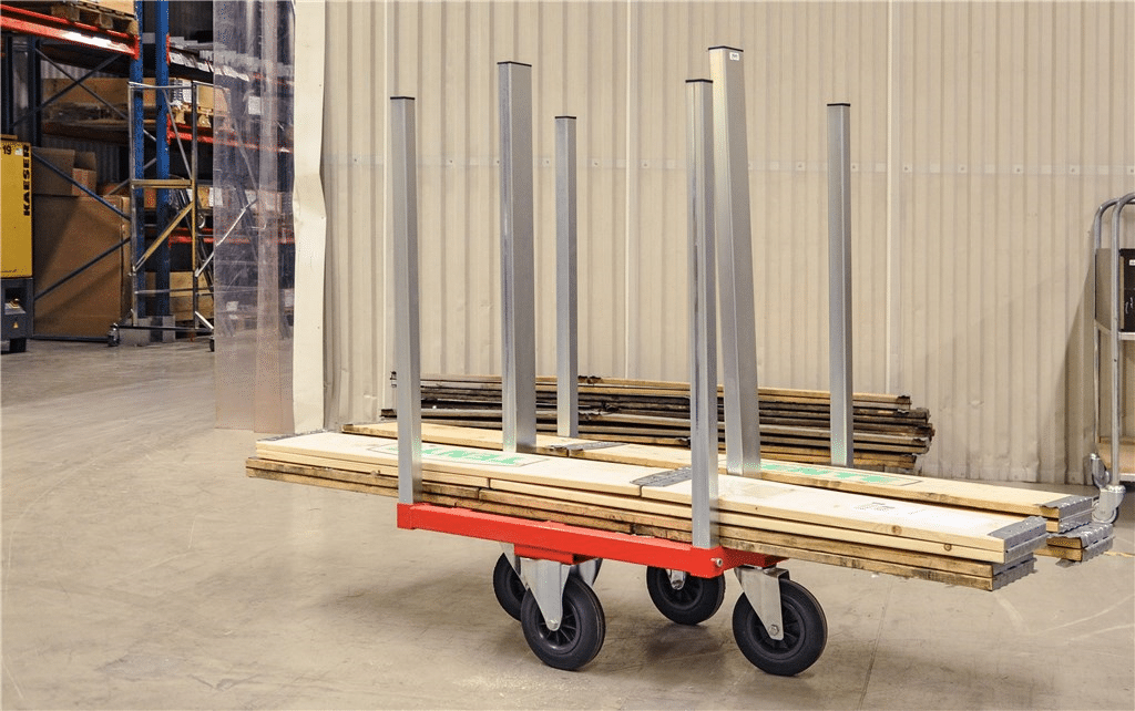 Pallkragsvagn som gör det enkelt och lätt att hantera pallkragar i olika storlekar. Levereras omonterad. Pulverlackerad med elförzinkade stolparHelsvertsad Max antal pallkragar 36 stDe fasta hjulen monteras på långsidan för smidig hanteringStolparnas längd 900 mm2 fasta 2 länk massiva gummihjul 200 x 50 mmBelastning 300 kg