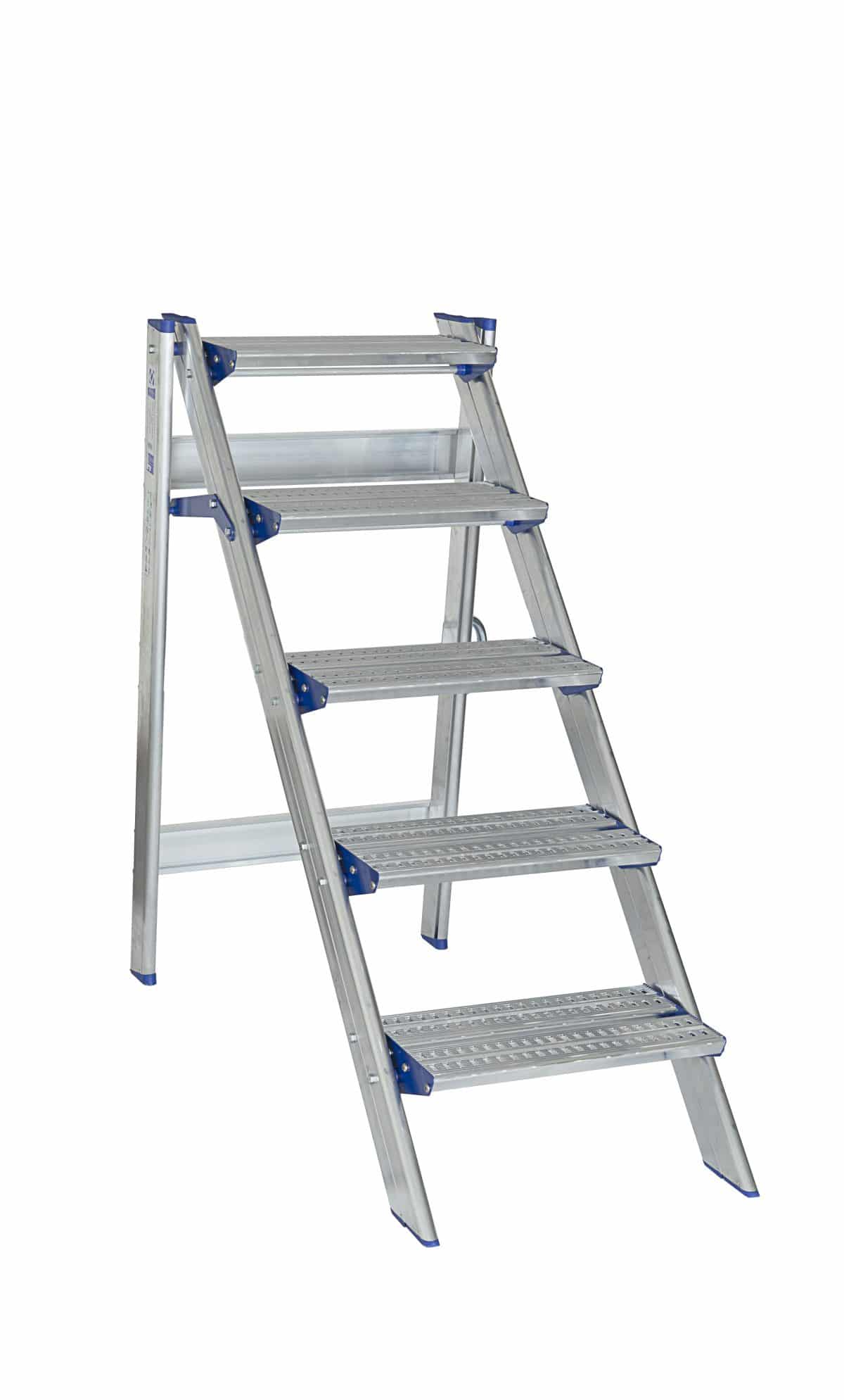 Marknadens stabilaste ihopfällbara trappa. Tillverkad i aluminium. För smidig hantering finns handtag monterat. 250 mm djup stegyta med genomsläpp för smuts och snö samt kraftiga räfflor för bättre halkskydd. Basbredd 600 mm. Viks ihop till ett platt paket.