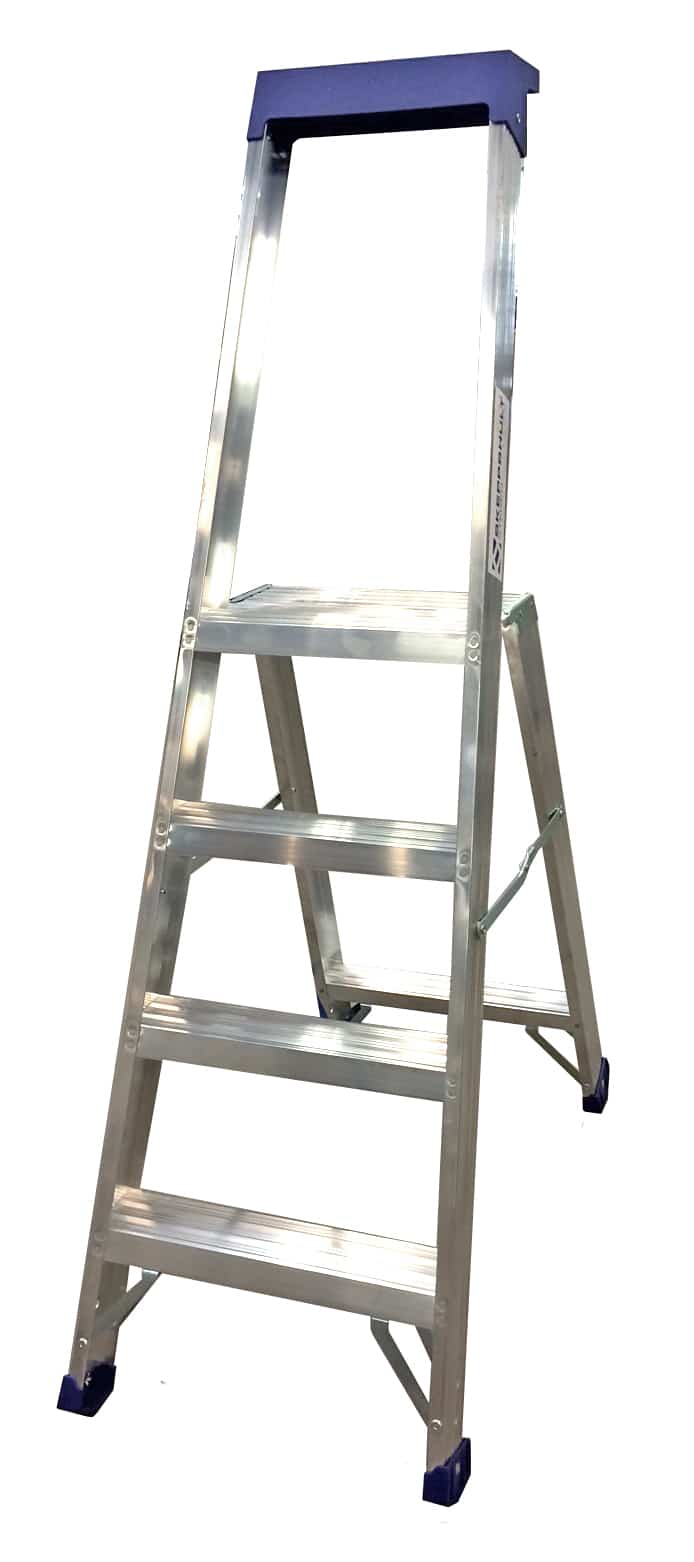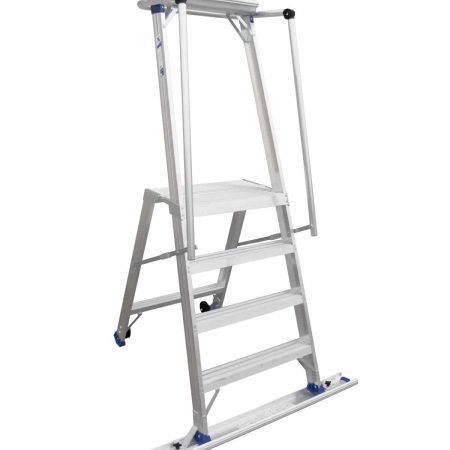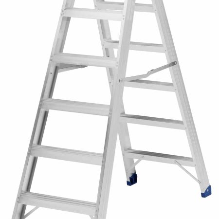 En stabil och robust trappstege i aluminium från svenska Skeppshultstegen som tål tuff användning. Stege 5050 har hydraulnitade steg och en stabil plattform. Plattformens mått är 375×250 mm, stegets djup är 81 mm. Steget är utrustad med fötter i plast som ger ett bra glidskydd och skyddar underlaget. Stegen har en praktisk förvaringslåda på bågen.