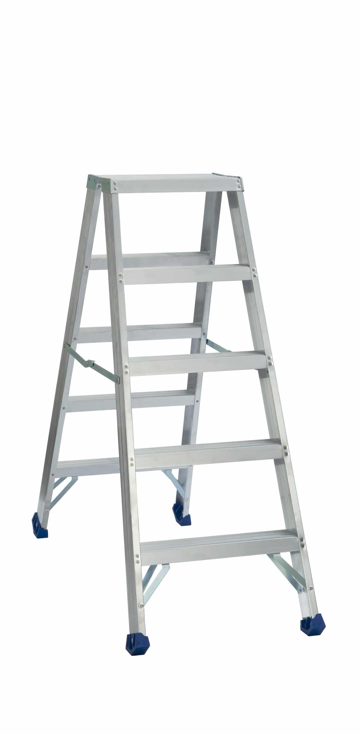 Stabil och robust dubbeltrappstege som tål tuff användning. Samtliga steg och plattform är hydraulnitade. Plattformens mått är 385×250 mm, stegdjup 81 mm
