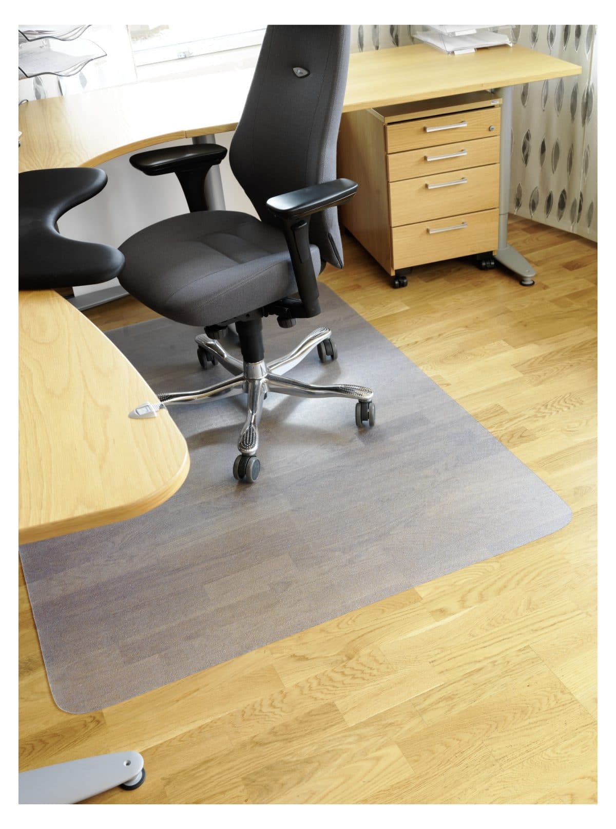Ett Premium stolsunderlägg skyddar effektivt golvet från slitage och nedsmutsning. Du får dessutom en högre komfort genom att kontorsstolen rullar lätt och behagligt. Tillverkad av återvinningsbar transparent ny vinylplast. Ovansidan är lätt mönstrad för att minska halkrisken. Hörnen rundade för bästa design och kanterna är fasade.