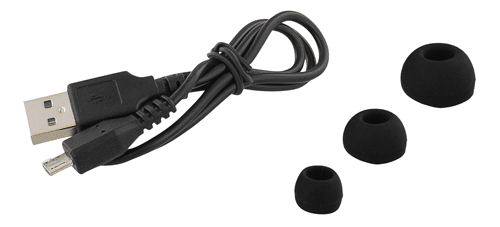 Förpackningen innehåller: Mono Bluetooth headset, öronbygel, 3st olika storlekar på öronplug, USB-kabel för laddning, manual