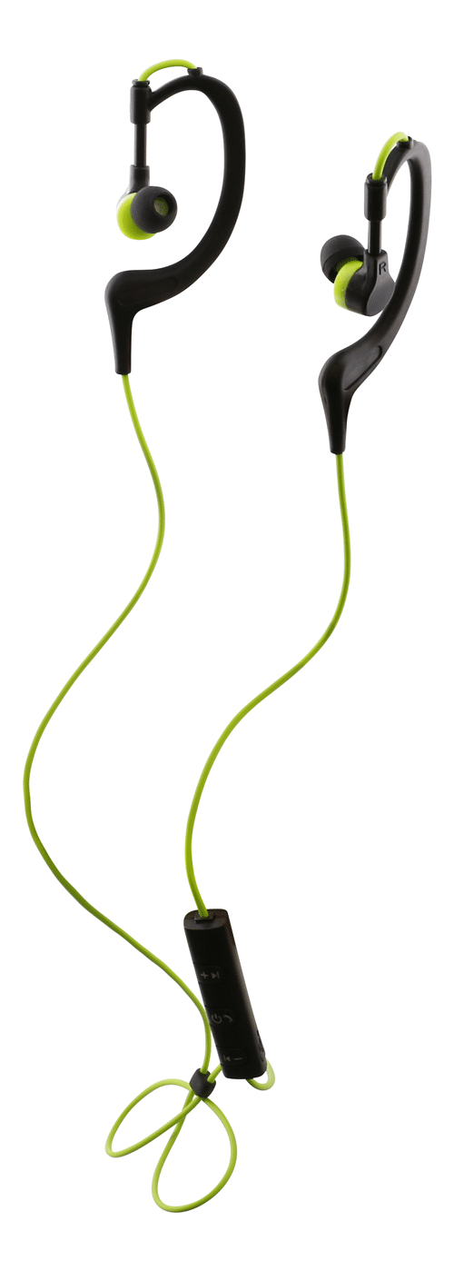Sporthörlurar med mikrofon som kan anslutas till din enhet trådlöst via Bluetooth. Hörlurarna har ca 4 timmars speltid och en räckvidd på upp till 10 meter. Du kan enkelt styra din Bluetooth-enhet med kontrollen där även mikrofonen sitter. Tack vare justerbara öronbyglar så dom anpassas efter de flestas öron och sitter därför på plats även under häftiga rörelser. Börjar batteriet ta slut laddas hörlurarna snabbt upp via Micro USB.