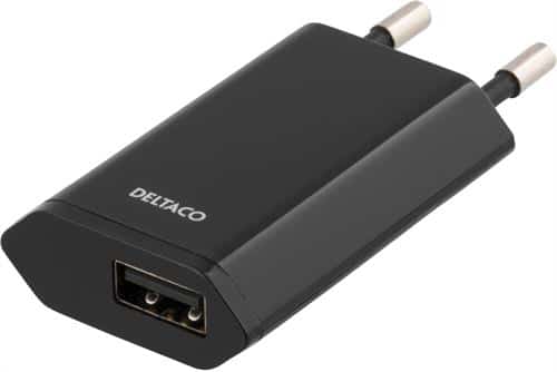 DELTACO Väggladdare 230V till 5V USB, 1A, 1xUSB-port, svart