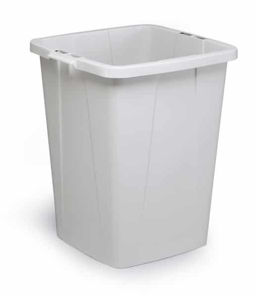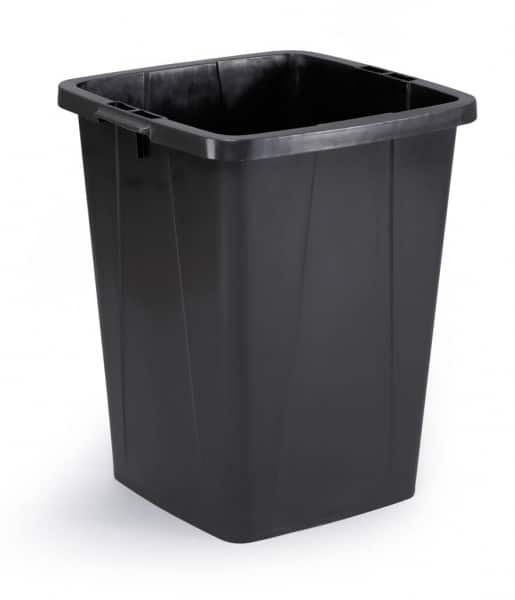 Durabin 90 liter, kvadratisk tunna i plast med bärhandtag för enkel transport. Rymmer 90 liter. Idealisk för avfall, sortering och återvinning. Livsmedelsgodkänd (dock ej svart). Som tillbehör finns lock samt vagnar för en eller två tunnor och klisteretiketter för uppmärkning av tunnan.