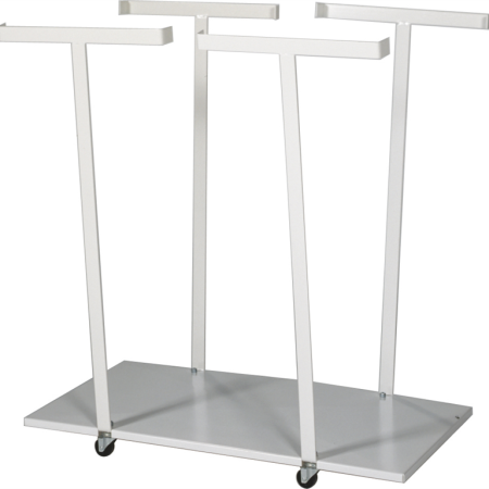 Säckstativ, golvmodell, med 4 hjul. Avsedd för sopsäckar med storlek 60 – 70 liter. Tät bottenplatta ger stöd åt avfallet. Enkel montering. Mått: 310x310x680 mm Färg: Vit