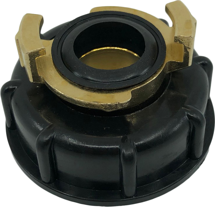 IBC-adapter 60×6 med klokoppling i varmpressad mässing som är vanlig inom handelsträdgårdar, lantbruk, kommuner och byggindustrin. Kan användas vid både sug och tryck.