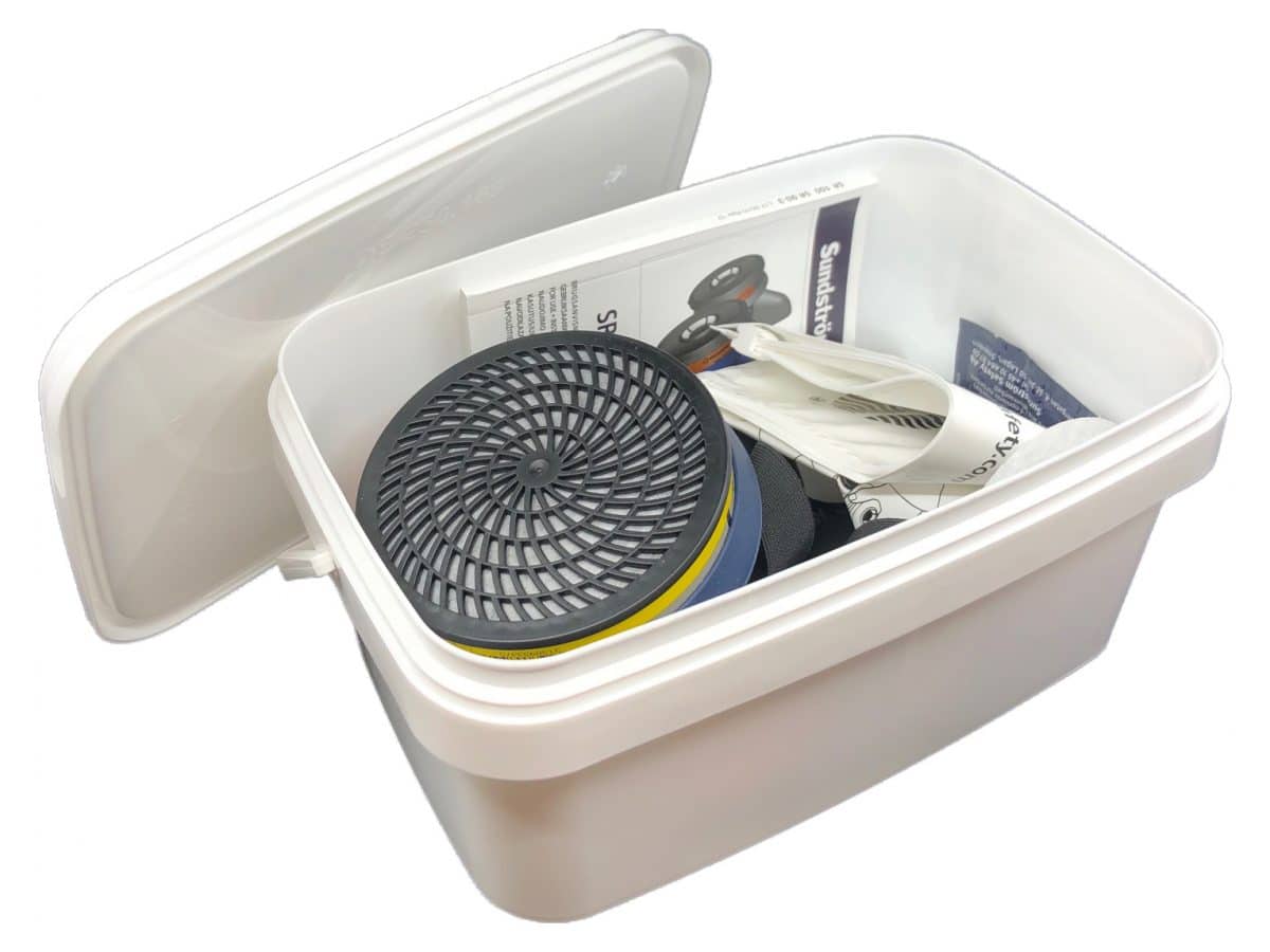 Håll ordning och reda på din personlig skyddsutrustning med denna praktiska förvaringslåda med lock. Lådan är tillverkad av livsmedelsgodkänd plast och har ett tättslutande lock som förhindrar att smuts kommer in. Lådan rymmer enkelt en halvmask inklusive extra filter.