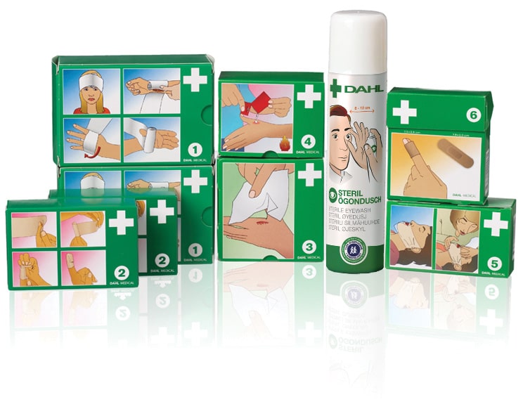 Komplett påfyllnad till din förbandstavla – första hjälpen tavla. Allt tillverkat av högkvalitativa produkter, sterilt emballerat i anpassade förpackningar för förbandstavlan.