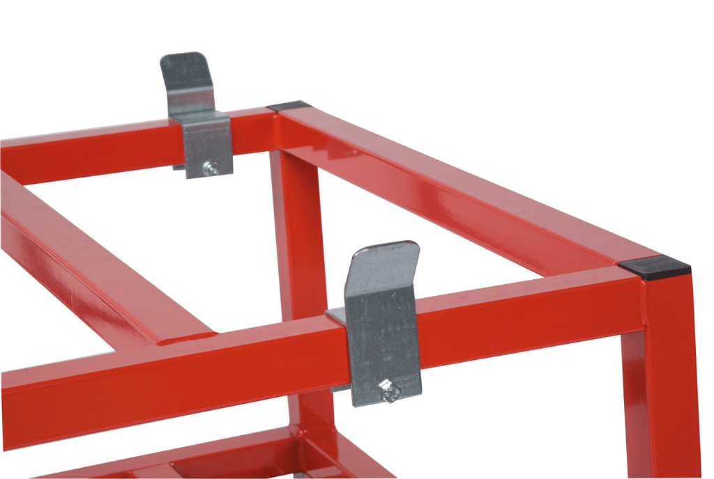 Komplett sats för eftermontering på pallvagnar 800×600 samt 1200×800 mm. Medför att Eur-pallen ligger fixerad på vagnramen. Praktiskt vid mobil godshantering.