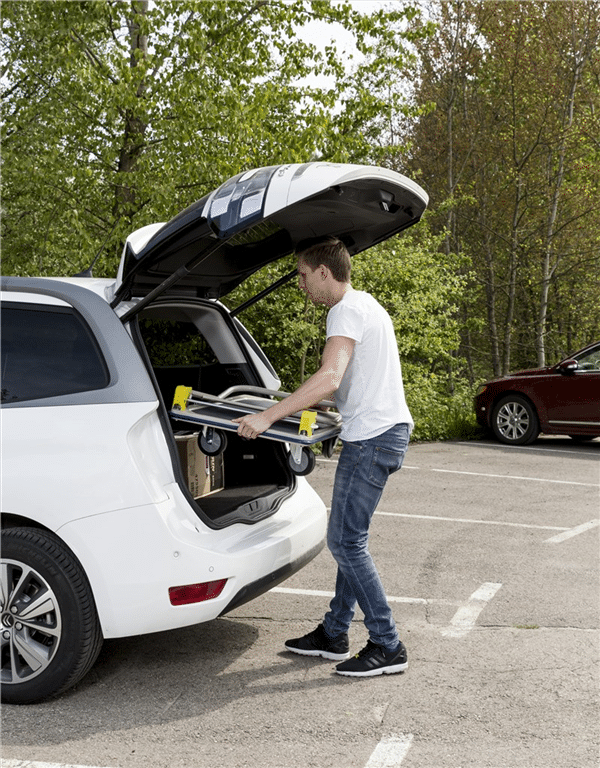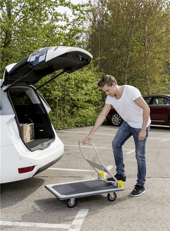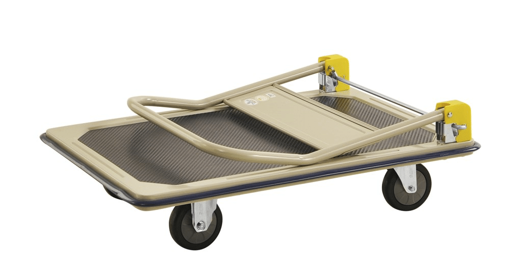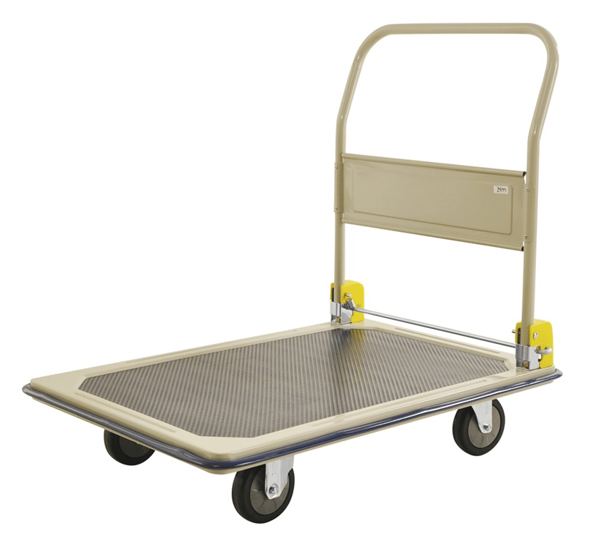 Platåvagn med fällbart handtag och non slip yta. Den perfekra vagnen att ta med ex. i bilen. Finns som standard i 2 modeller. Levereras omonterad. Pulverlackerad och lastplan med non slip yta