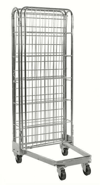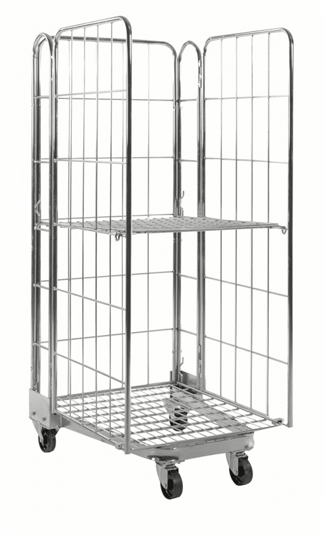 Stackningsbar rullcontainer med 3 sidor och 1 hylla som standard. Finns i flera olika modeller. Elförzinkad, stackningsbarNätets maska 105 x 395 mmÖppning på 800 mm sidanInvändigt mått: 780 x 670 x 1600 mmMonteras utan verktyg1 hylla ingår2 fasta och 2 länkhjul 100 mm Belastning 400 kg
